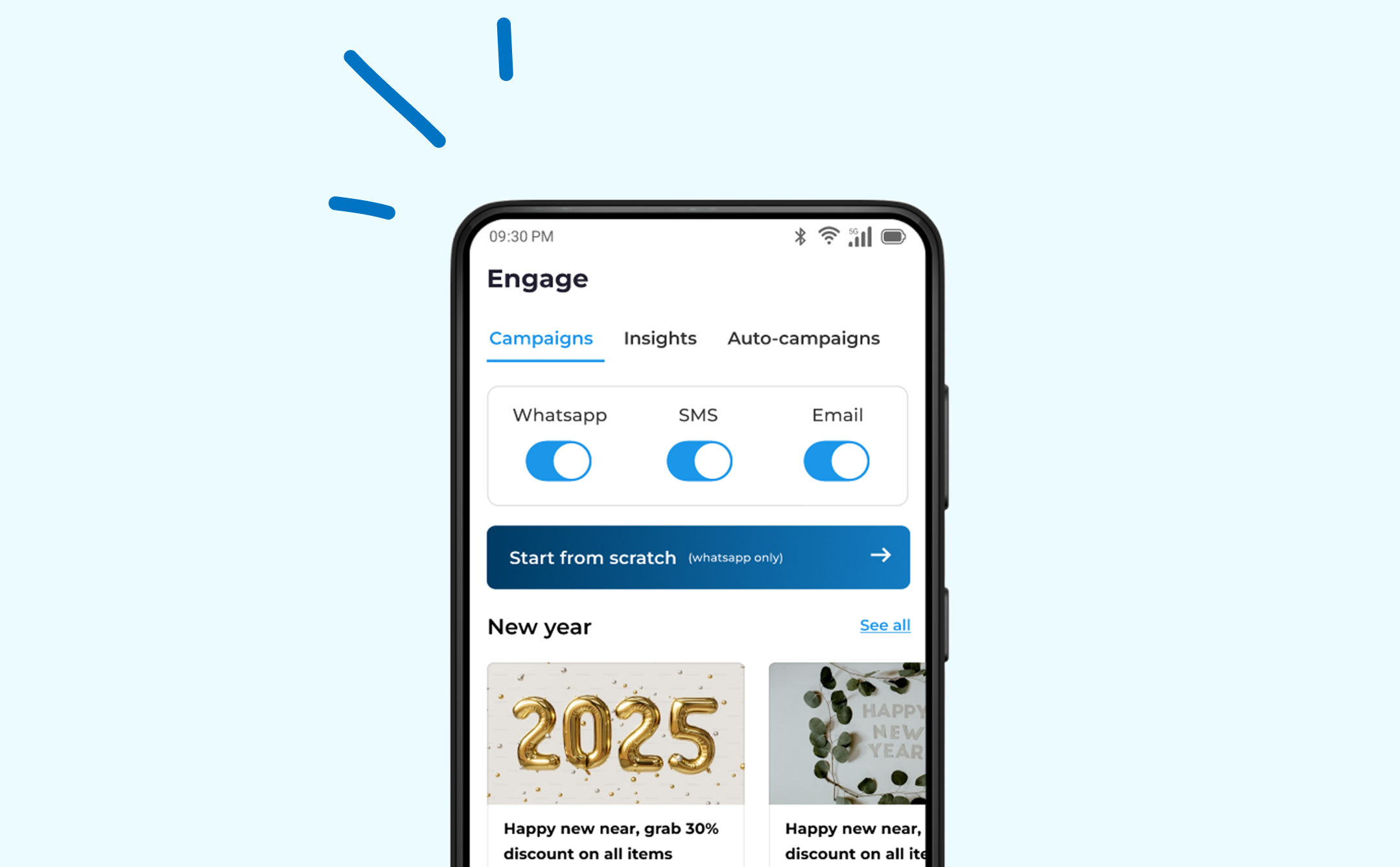 With Grahak Setu, you can send bulk SMS, WhatsApp, and email campaigns to share offers, updates, and announcements—just like big businesses do
